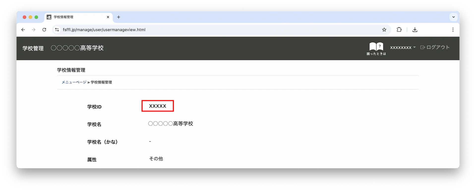4-2.「学校ID」に表示されている数字をご確認ください。