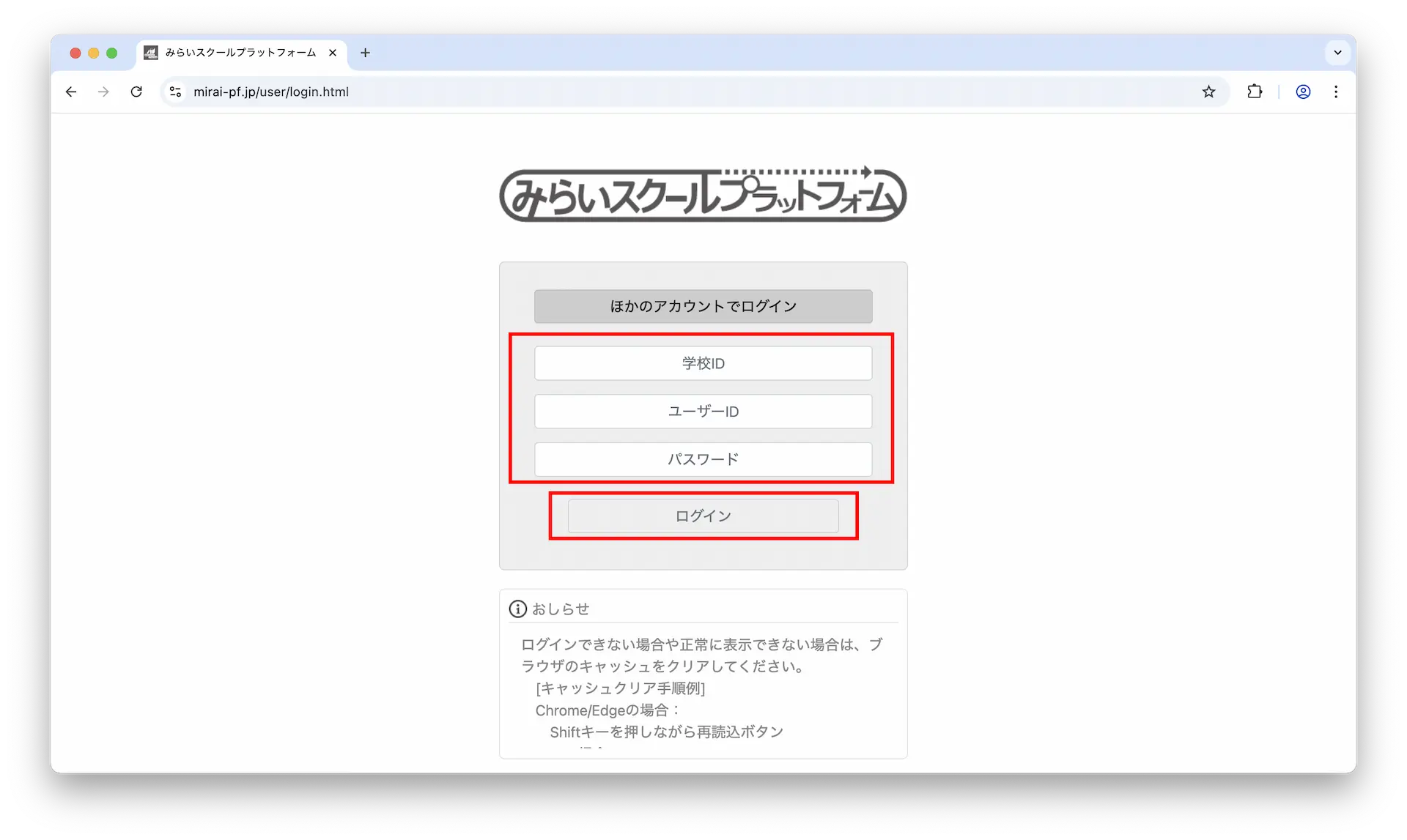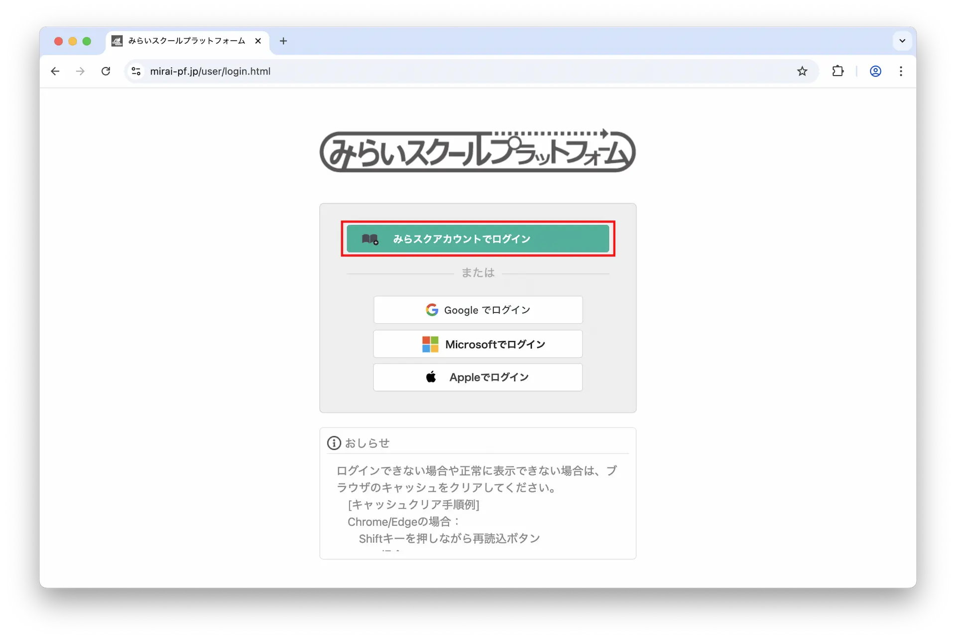 以上で「みらいスクールプラットフォーム」を利用する準備が完了しました。