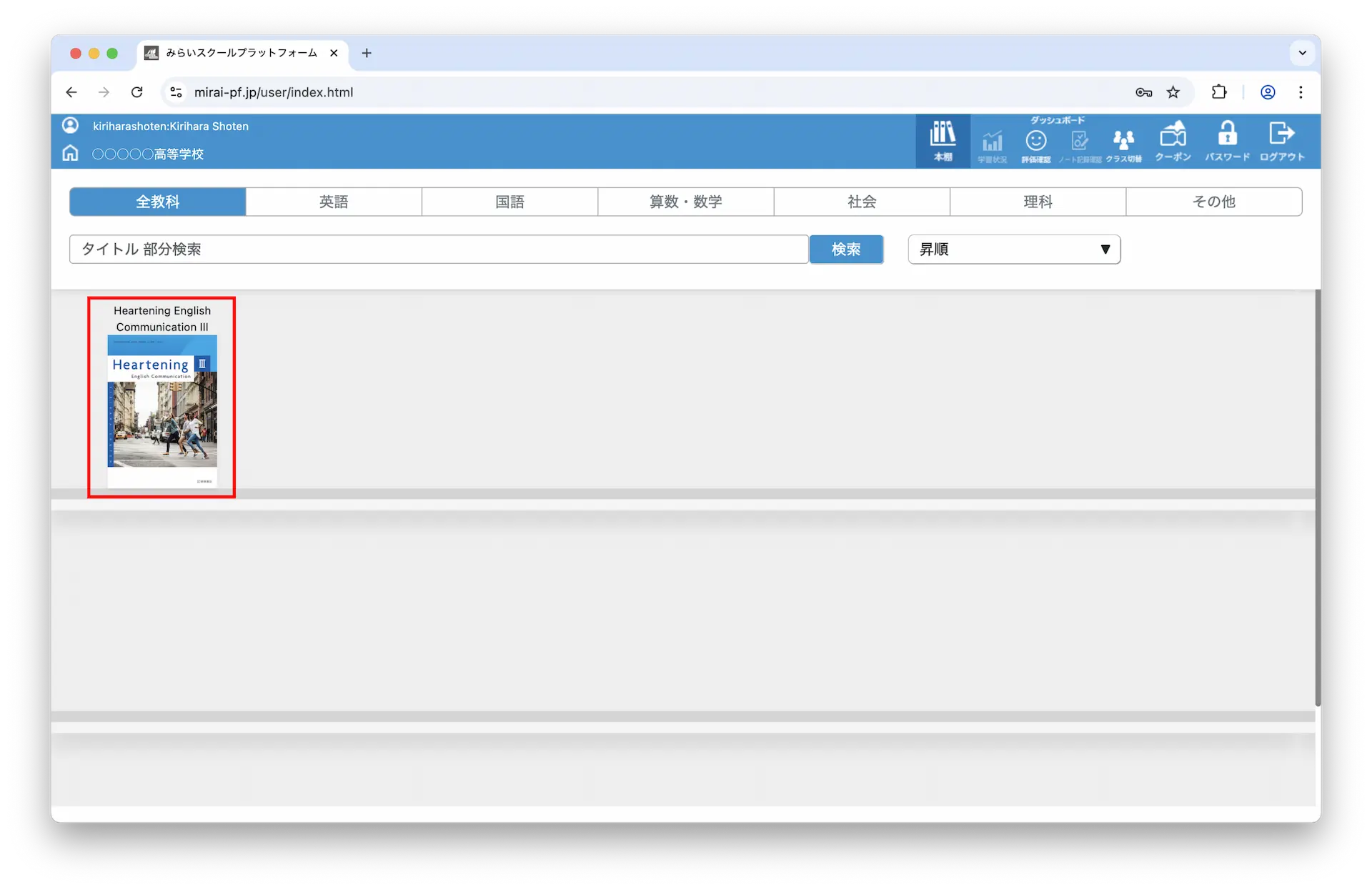 5-4.ログインに成功すると本棚画面が表示されるので、利用したいコンテンツの表紙画像をクリックしてください。
