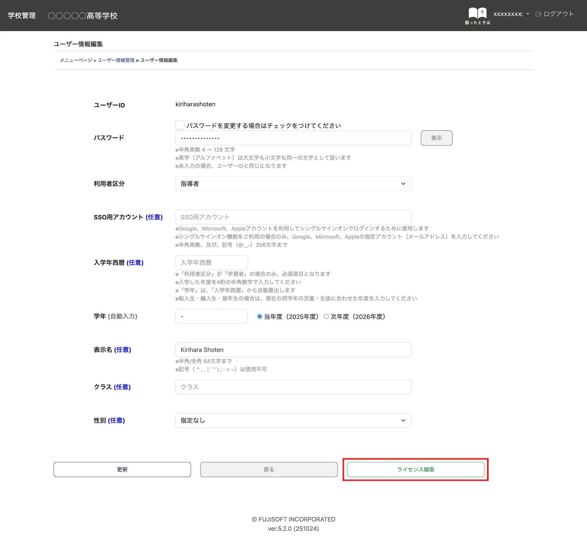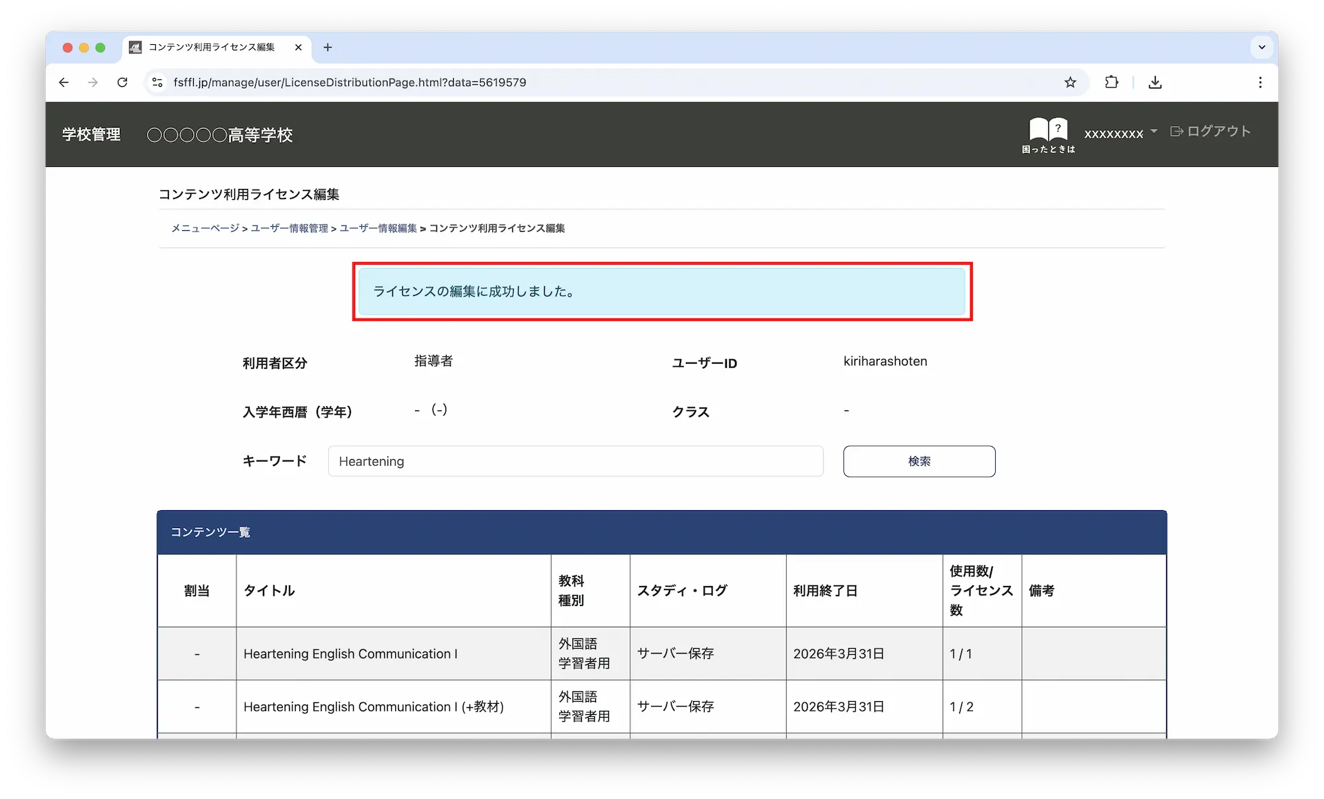 - ステップ 3・ライセンスを編集する < 学校管理システム >