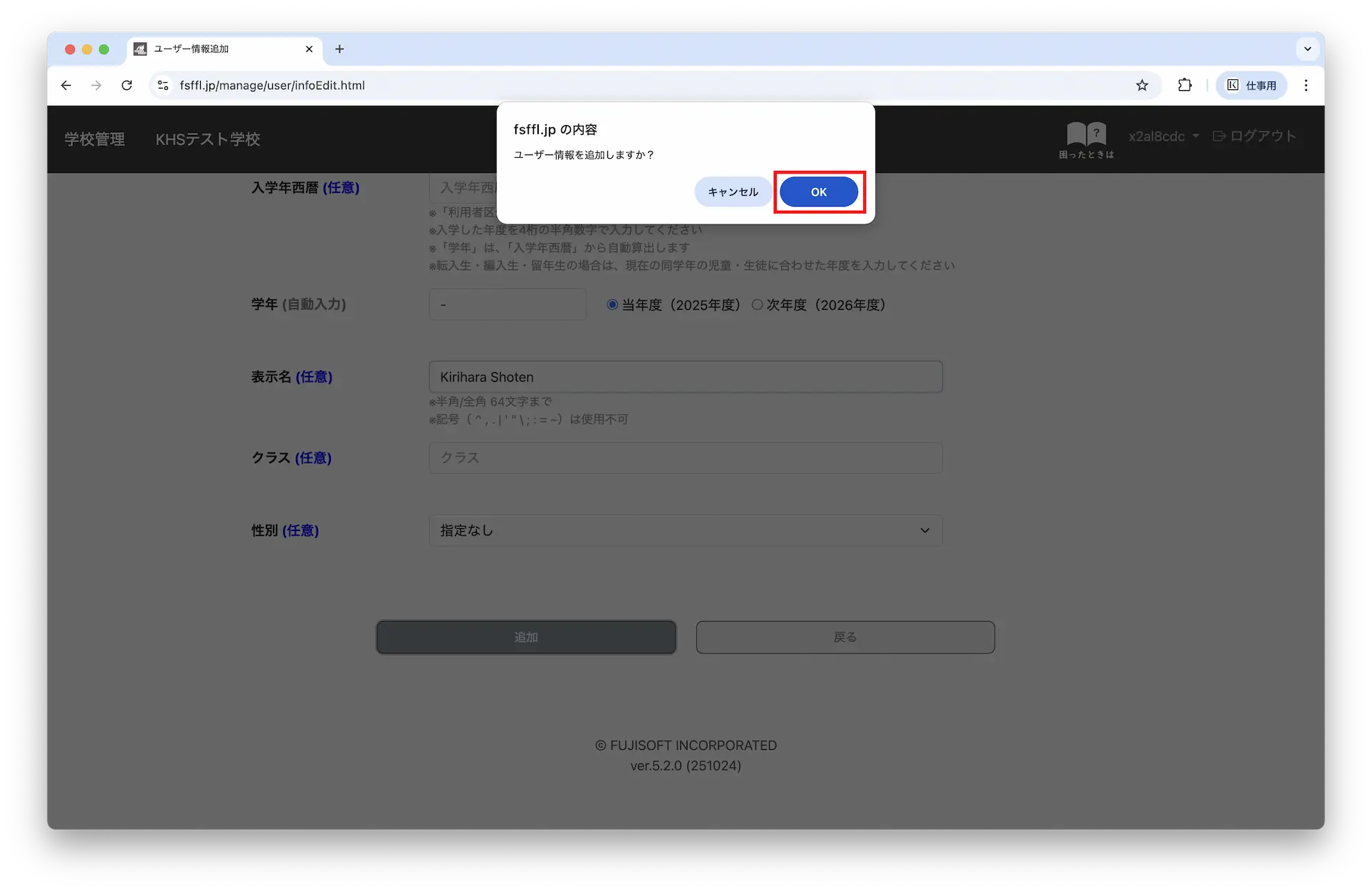 2-3.追加するユーザーの情報を入力して「追加」ボタンをクリックします。